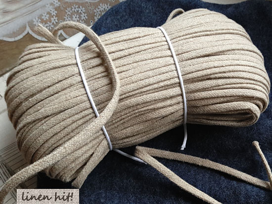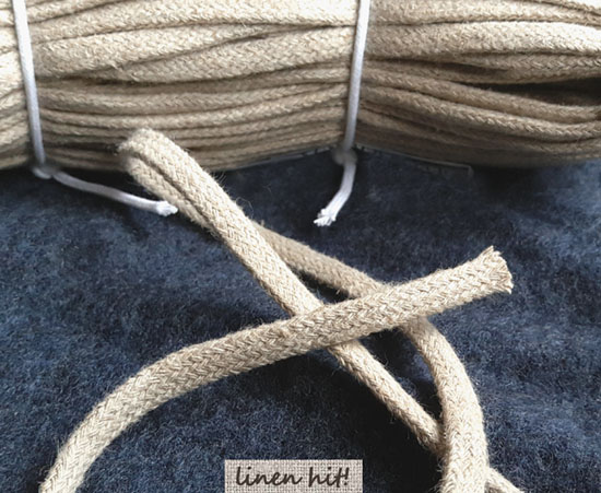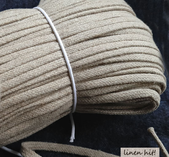 Wspaniałej jakości miękki, pleciony sznurek lniany, w naturalnym kolorze jasno szarym.