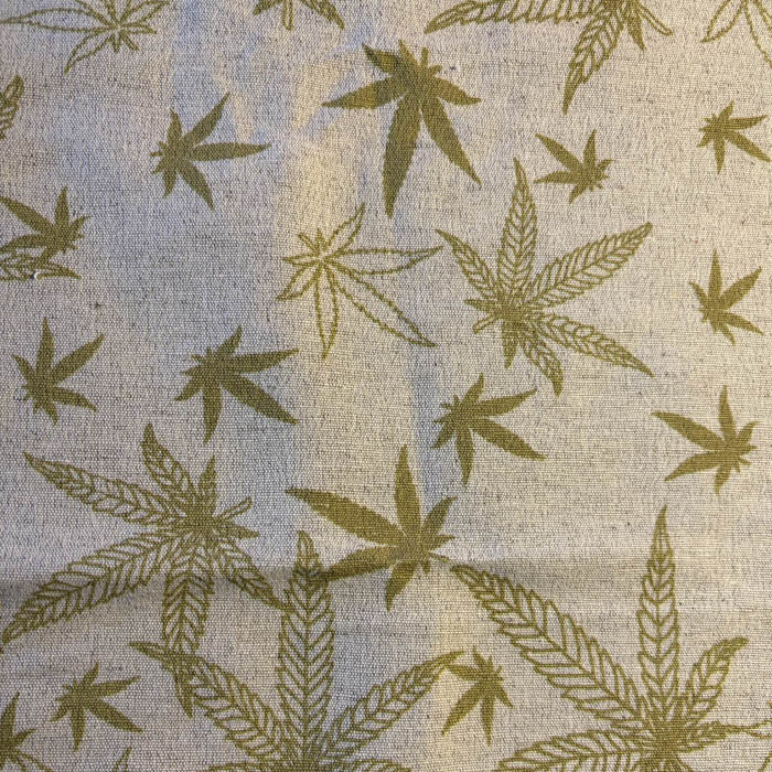 Tkanina bawełniano konopna w naturalnym kolorze z nadrukiem w liście konopi to niebywała gratka dla koneserów i wielbicieli oryginalnych tekstyliów konopnych. Jest miękka i pięknie się układa.
